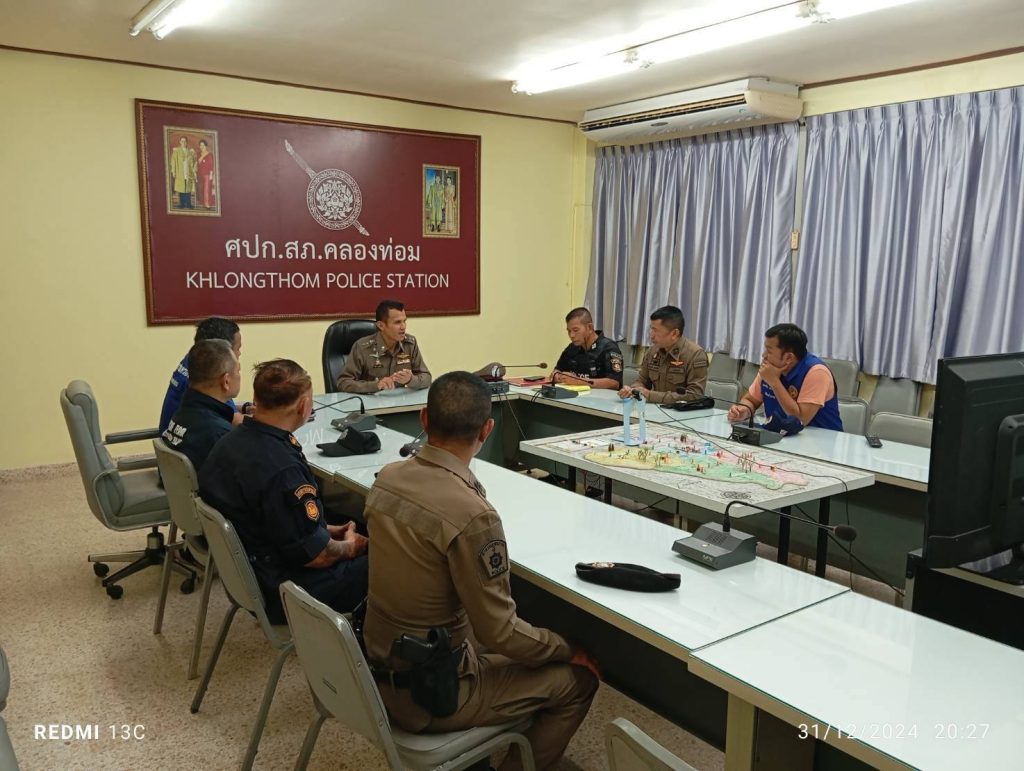 วันที่ 31 ธ.ค.2567 เวลา 20.00 น. พ.ต.อ.ทิวากร คงเพ็ชร ผกก.สภ.คลองท่อม, พ.ต.ท.อธิวัฒน์ ไชยศรีสุทธิ์ รอง ผกก.สส.สภ.คลองท่อม,พ.ต.ท.ประวิทย์ เเก้วนำ รอง ผกก.ป.สภ.คลองท่อม, พ.ต.ท.มุตินันท์ จิตรแข็ง รอง ผกก.สอบสวนฯ, พ.ต.ท.อนุกร กาญจนาประดิษฐ สวป.สภ.คลองท่อม, พ.ต.ท.วันไชย หอมหวล สว.สส.สภ.คลองท่อม, พร้อมด้วยข้าราชการตำรวจสถานีตำรวจภูธรคลองท่อม ฝ่ายปกครอง กำนัน ผู้ใหญ่บ้าน ร่วมปล่อยเเถวเพื่อ