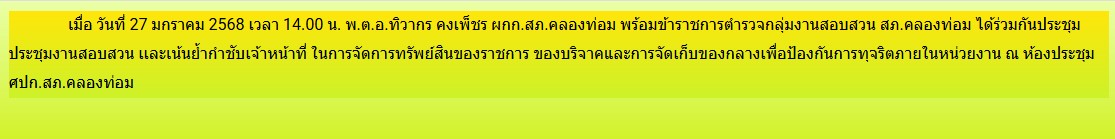 เมื่อวันที่ ๒ ก.ค.๖๘ เวลา ๑๔.๐๐ น. พ.ต.อ.ทิวากร คงเพ็ชร ผกก.สภ.คลองท่อม พร้อมข้าราชการตำรวจในสังกัด