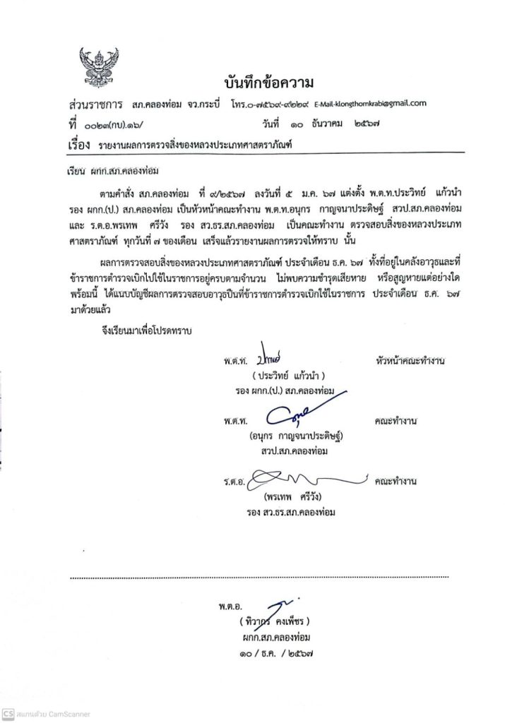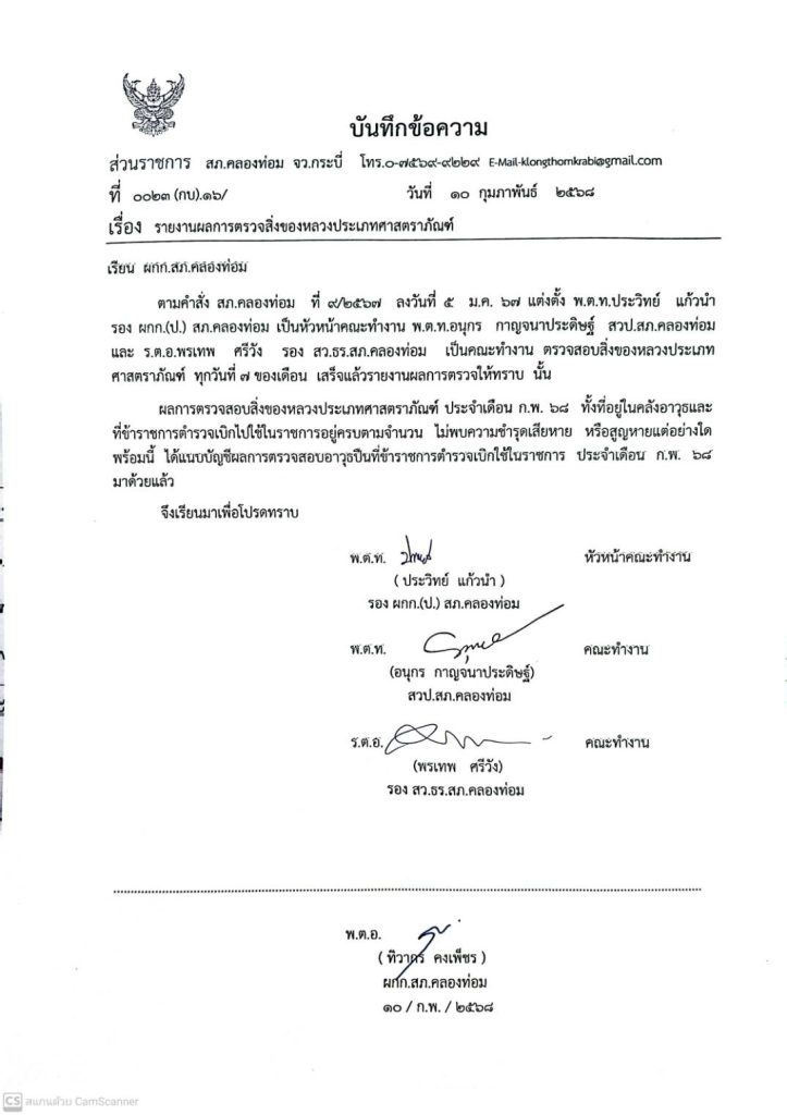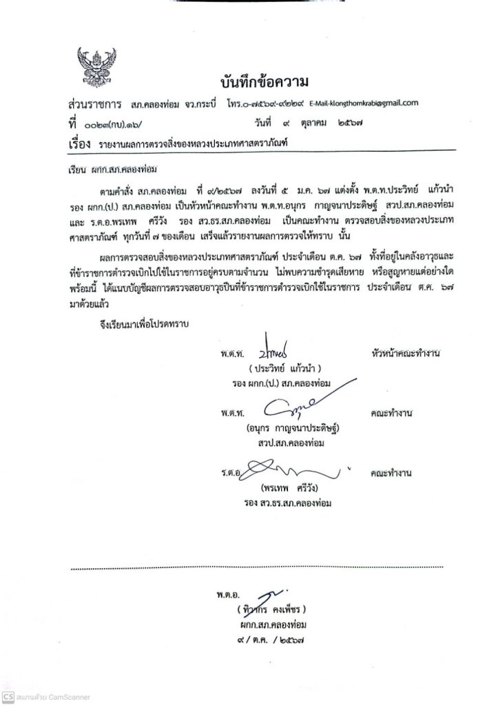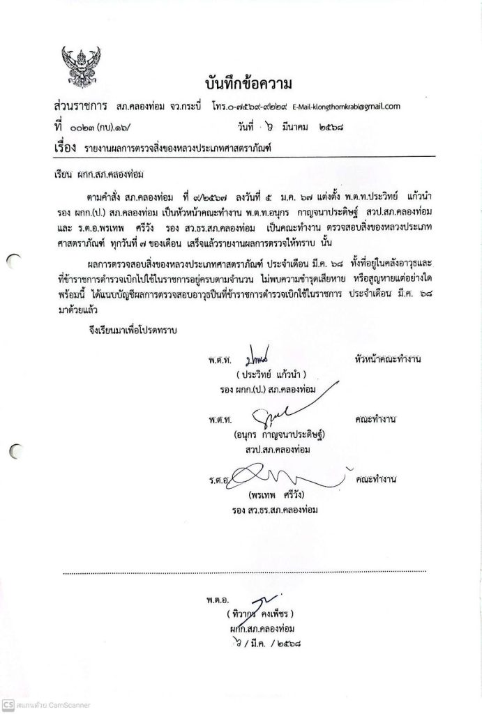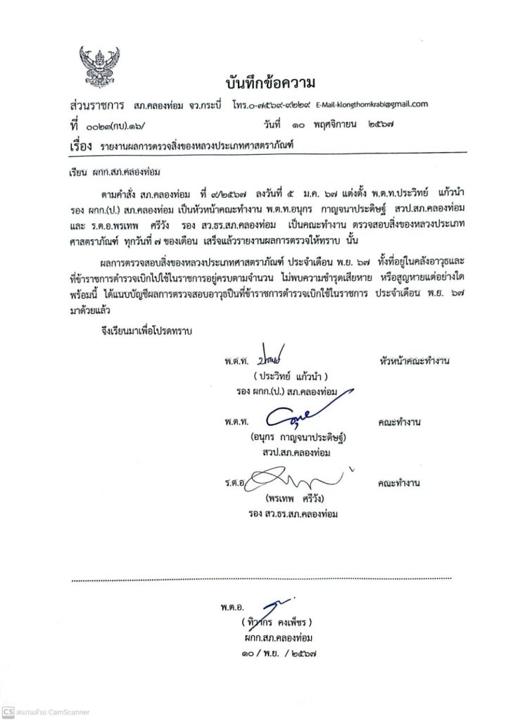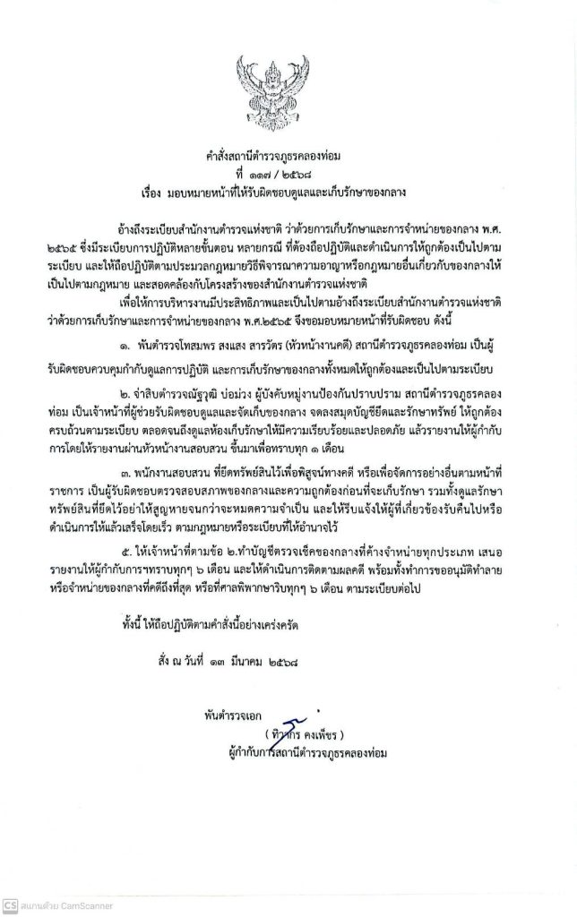 คำสั่งมอบหมายหน้าที่รับผิดชอบดูเเลเเละรักษาของกลาง
